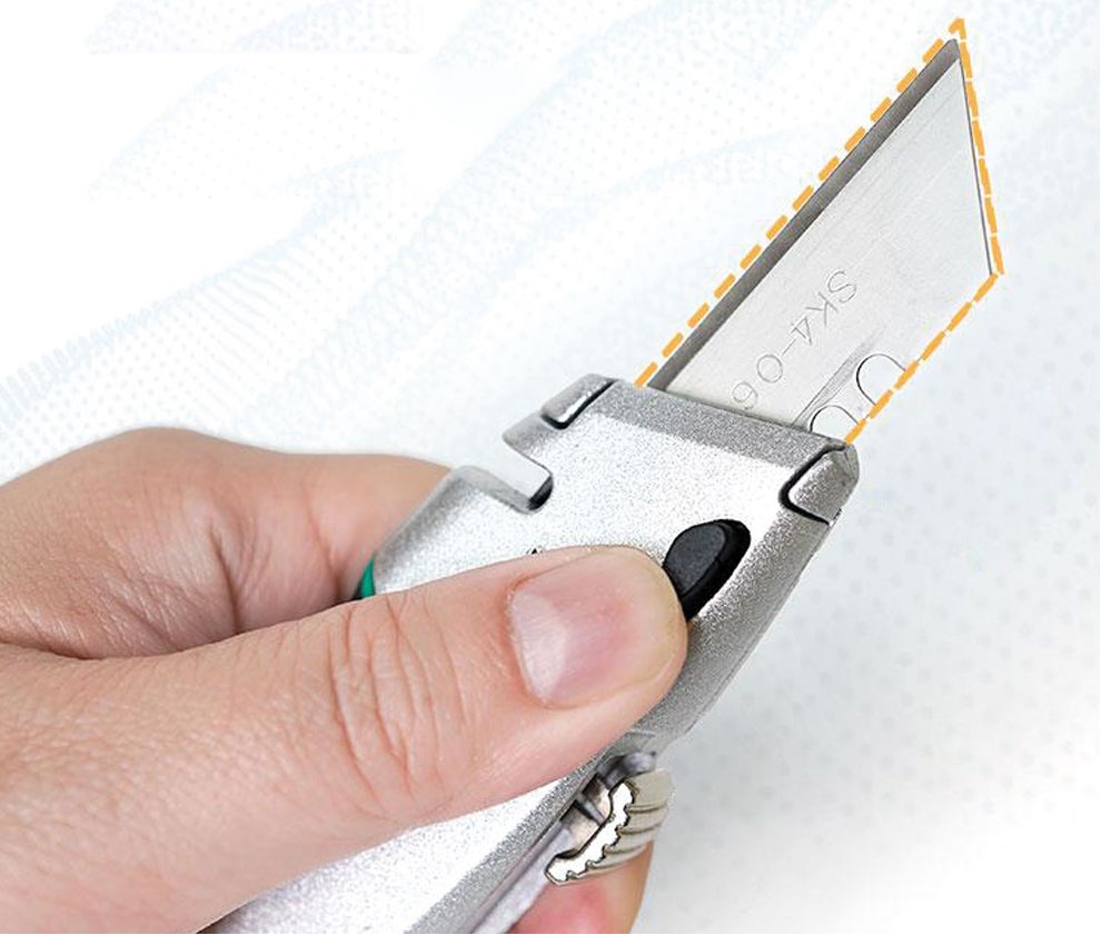 Está equipado con una cuchilla de corte afilada y duradera de material SK4 e incluye 4 cuchillas de repuesto.