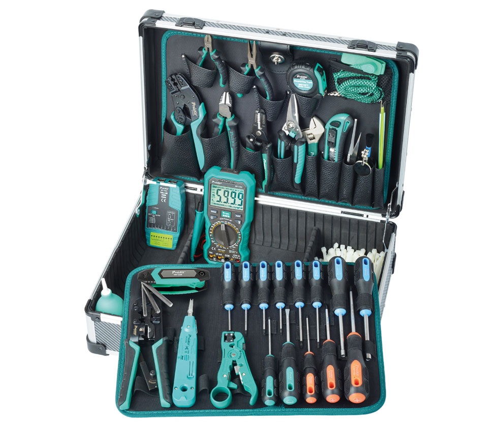 Maletín profesional de instalador de telecomunicaciones, redes, CCTV o mantenimiento informático. Está compuesto por una maleta de alta durabilidad con estructura de aluminio y fibra de carbono multicapa y una selección de herramientas que facilitarán cualquier trabajo de instalación de cableado.