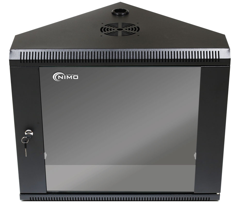 Rack de 19" con forma triangular, diseñado para instalar en esquinas, se adapta a esquinas para zonas de difícil instalación para aprovechar el espacio